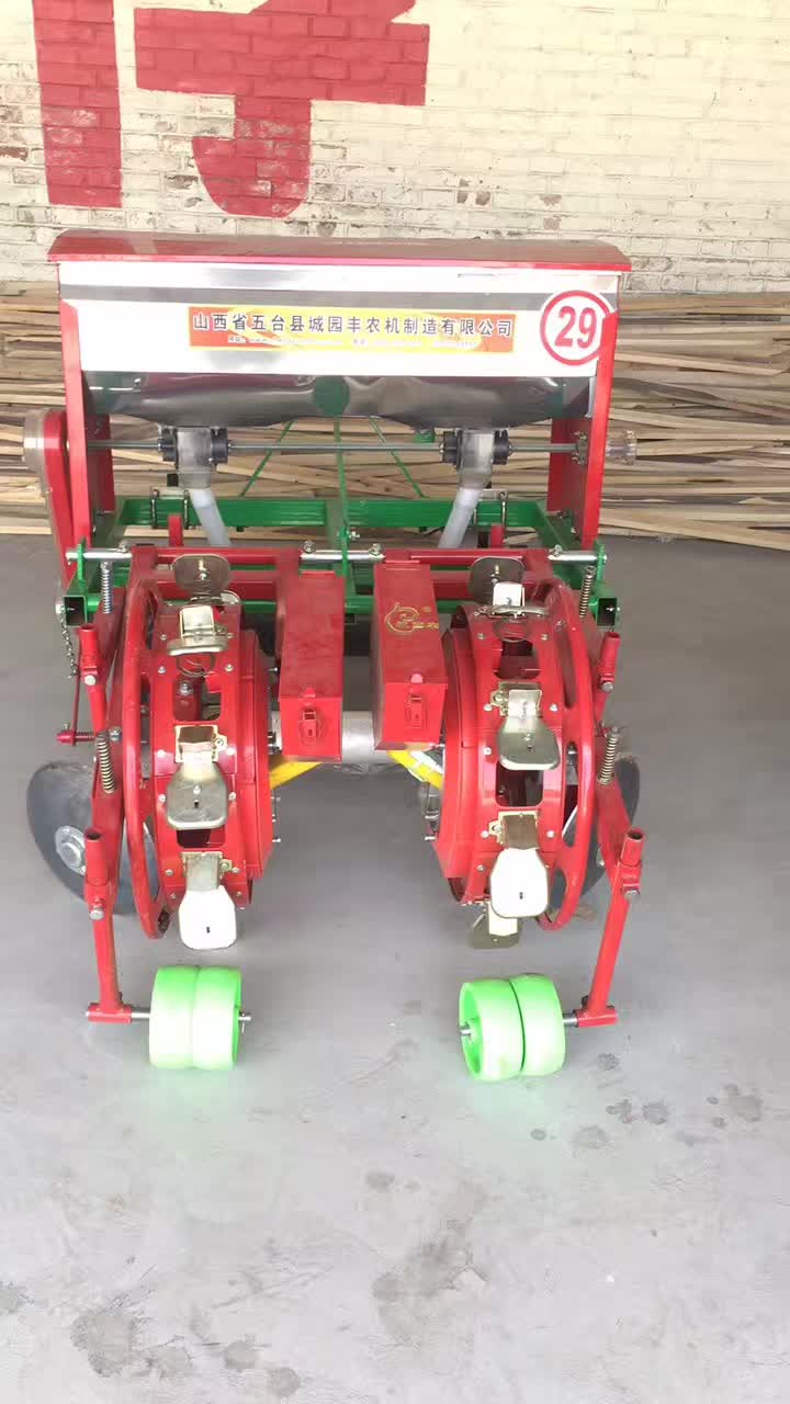 “城園豐”牌2MBF-1/2型玉米鋪膜施肥精量播種機(jī)是按照華北地區(qū)高寒冷涼山區(qū)覆膜玉米栽培農(nóng)藝要求精心改進(jìn)設(shè)計,主要針對美國引進(jìn)的先玉335玉米種子需單粒播種的特點,與12-25馬力四輪拖拉機(jī)配套使用,可一次性完成刮土整形、溝施底肥、鋪膜、壓膜覆土、膜上打孔、精量點播、穴式或條式覆土等多項復(fù)式作業(yè),具有結(jié)構(gòu)簡單,操作維護(hù)方便等特點,其優(yōu)點是:一機(jī)多用(播玉米可以通過增減鴨咀,達(dá)到高密、中密互換;‚換谷子排種器可以精量播種谷子。)與穴式覆土(覆土少,采光面大,提高地溫快;‚不易聚水,不易板結(jié),不用放苗,省工又省時。)可實現(xiàn)單粒精量播種,不傷籽種,節(jié)種省工、節(jié)本增產(chǎn),深受廣大農(nóng)民的歡迎。