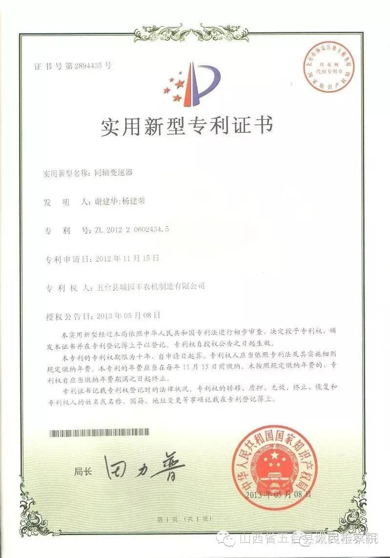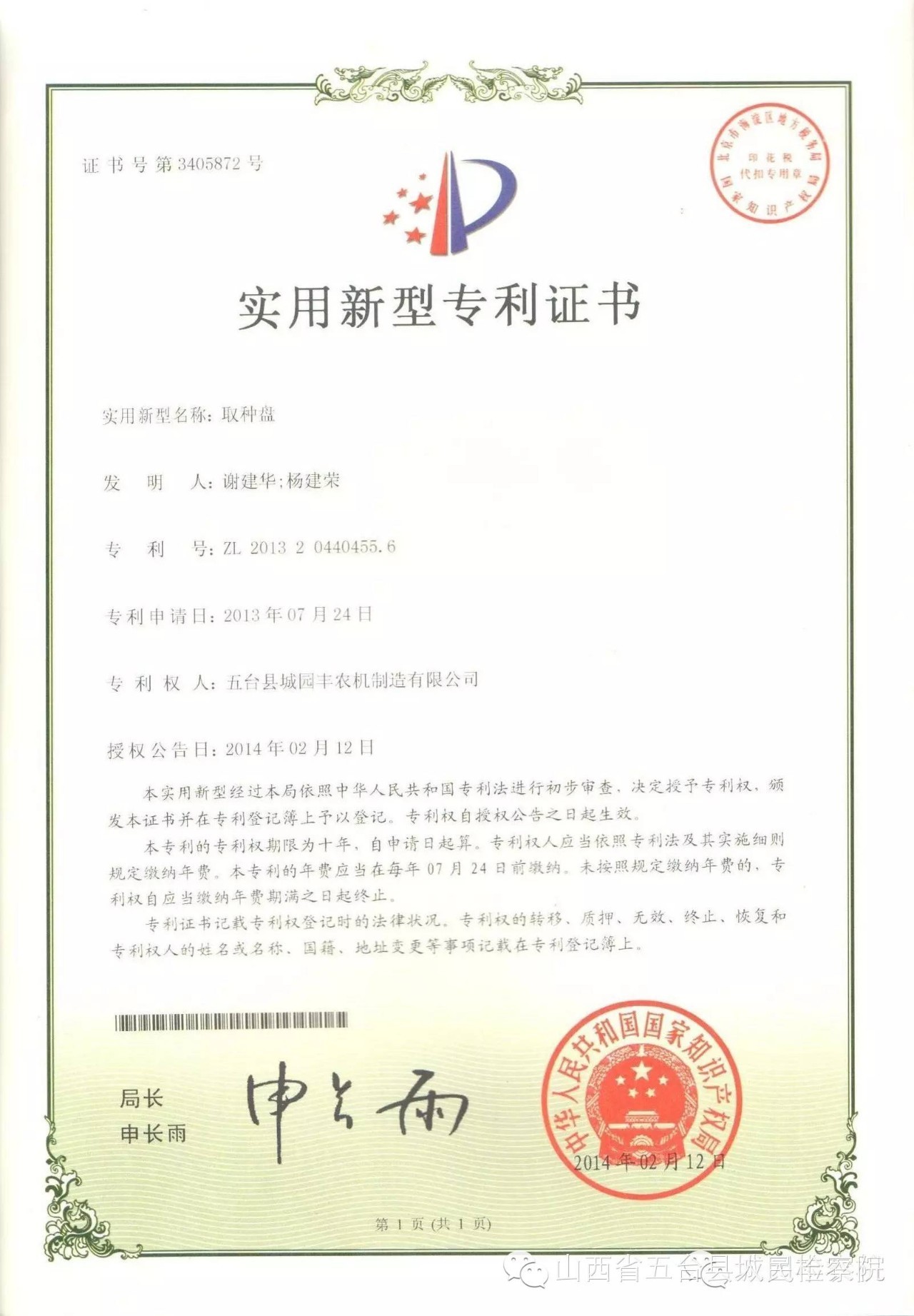 公司的主要產(chǎn)品玉米鋪膜精量播種機的研發(fā)制造推廣獲得了2013年忻州市科學技術進步獎、一項發(fā)明專利及5項實用新型專利等。